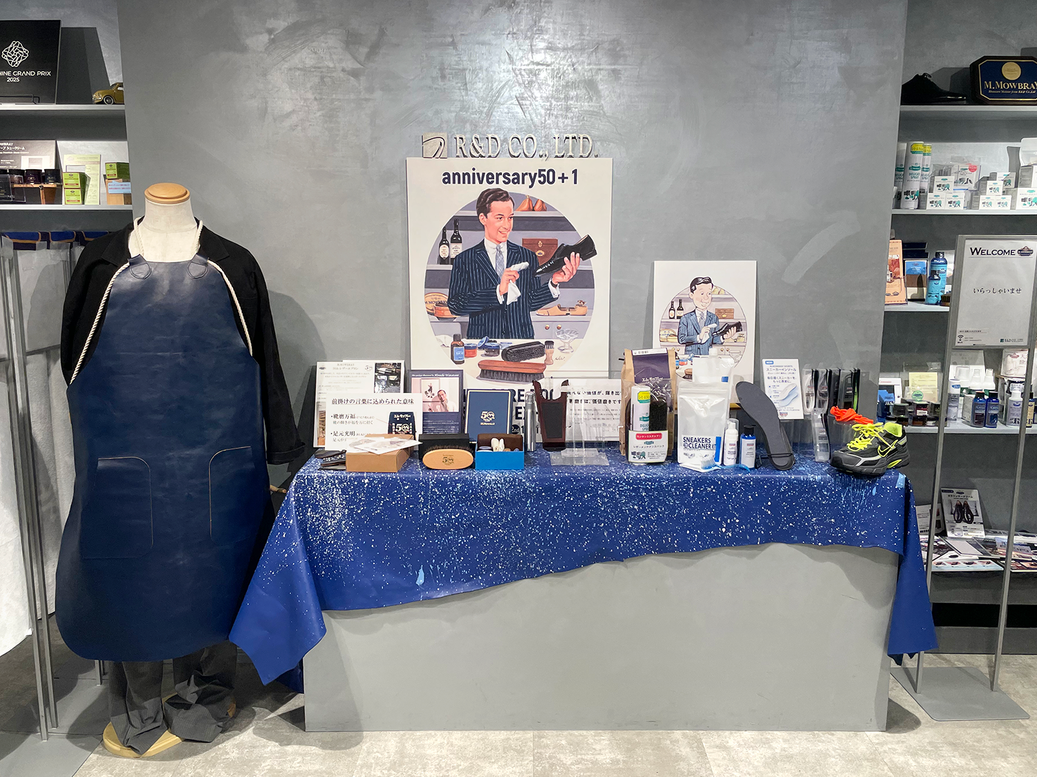 50周年を記念して特別ロゴや限定品も企画し、初の自社オリジナル革を使ったエプロンを販売するなど、お客様にも喜んでいただける取り組みを続けています。