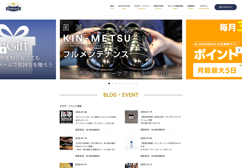 靴のメンテナンス用品やレザーケア用品を扱う会社として、今年で創業50年を迎えました。取扱商品の多くは海外から仕入れ、日本の環境に合うように調整しながら国内のお客様へ提供しています。革靴を長く使うためのケア文化を広めてきた第一人者として、スタッフの多くも靴や革が好きで入社してきた仲間ばかりです。私自身も靴作りを学んだ経験があり、そこから靴のケアに関心を持ち、この世界に飛び込みました。