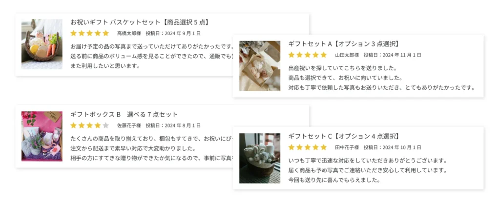 - ギフト用途を意識した文言(お礼・感謝・メッセージ)を入れる