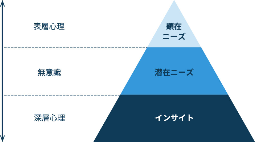例えば、顧客が「便利さ」を求めていると認識したとき、その便利さが具体的に何を意味するのかを突き詰めることで、ターゲットに響く提案が可能となります。顕在化した欲求(例えば「この商品が欲しい」)だけではなく、その根底にある深層心理に迫ることが重要です。