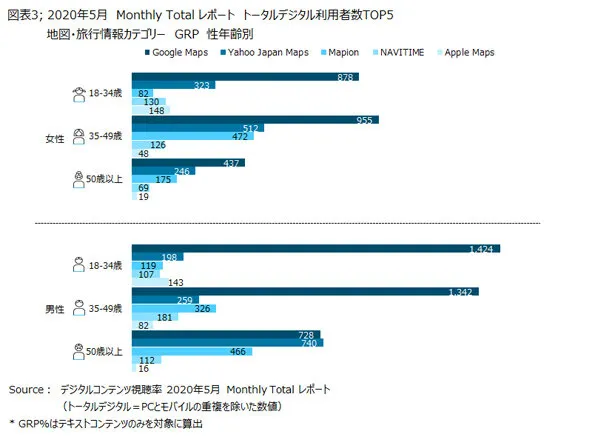 Googleマップは下記の図からもわかる通り、世代を問わず多くのユーザーに利用されています。