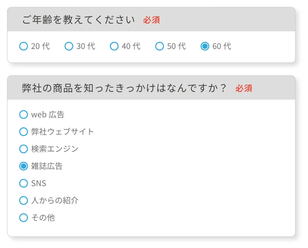 注文者アンケートを活用できず、アンケートを取得したまま蓄積していませんか?注文者アンケートとは、CVユーザーに対して、「ユーザー属性(年齢や性別)」、「流入経路(購入したきっかけ、何を見て知ったか)」などを聞くのに適しているアンケート機能です。
