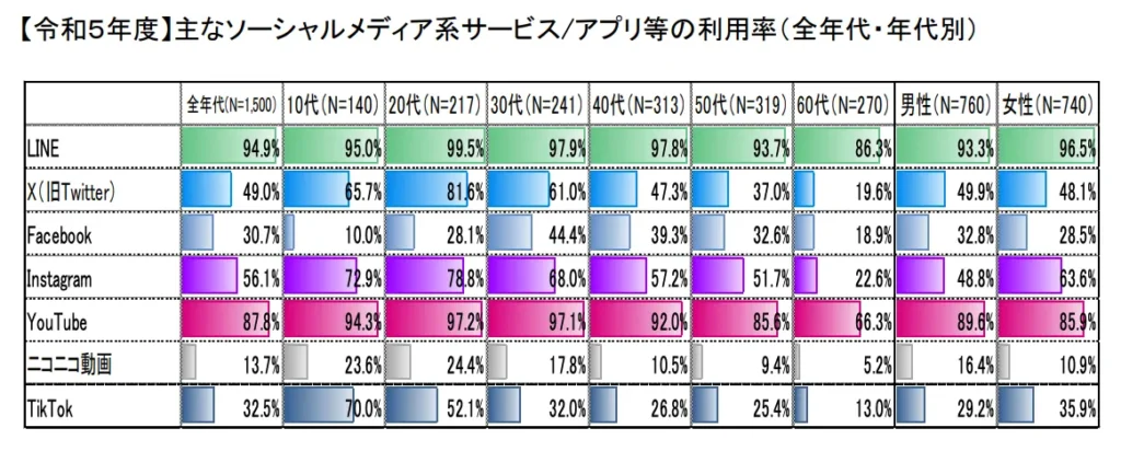 X(旧Twitter)とは、140字以内の短文でコミュニケーションをするSNSとして生まれました。「今、起きていること」をすぐにキャッチして活用できるリアルタイム性と拡散性が特徴であり、情報収集に活用する人が多い傾向です。趣味やコミュニティごとに複数アカウントを所有しているユーザーも多く、興味関心が同じ人々がつながるメディアとして活用される傾向があります。