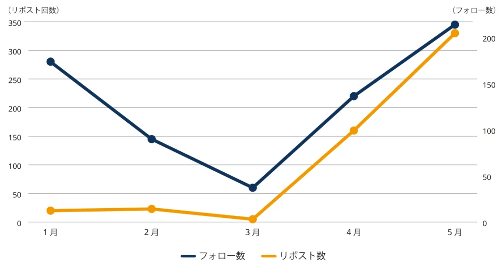 キャンペーン開始後、大幅にフォロワー数もリポスト(旧:リツイート)も上がっています。