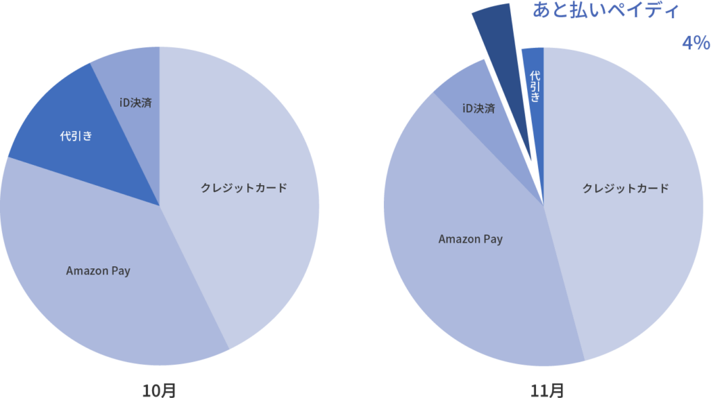 あと払いペイディが導入後の決済別売上構成の4%を占める結果になりました。