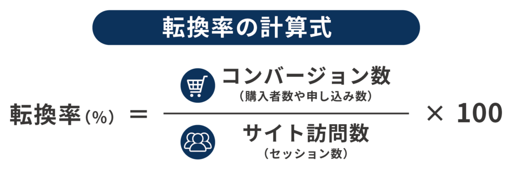例えば100人のユーザーがサイトに訪れ、20人が商品を購入した場合、転換率は20%となります。