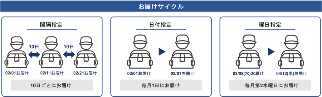一定の間隔で決まった商品を継続的にカスタマーにお届けする定期購入サービス。