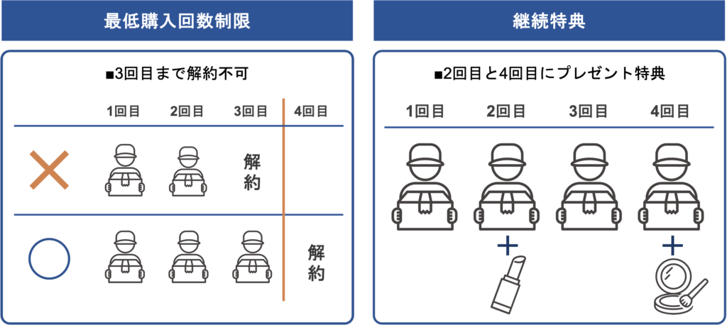多くのカスタマーに定期購入してもらうためには、定期購入に対する懸念点を払拭できるようなメリットを明示する必要があります。