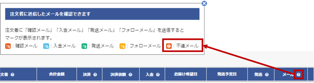 万が一、メールが不達だった場合でも受注台帳に「不達アイコン」が表示されます。
