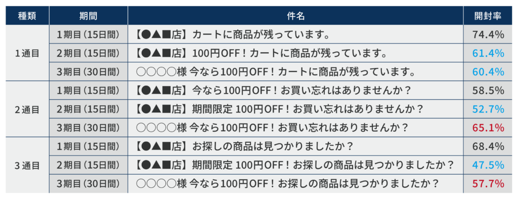 1期目の結果を踏まえて、開封率向上のために件名を下記のように変更しました。