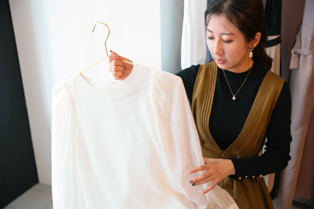 試着会などのイベントでは、あえて明るいピンクや白、ベージュを前面に出すようにしています。黒は意外と最後まで残ってしまうことがありますね。